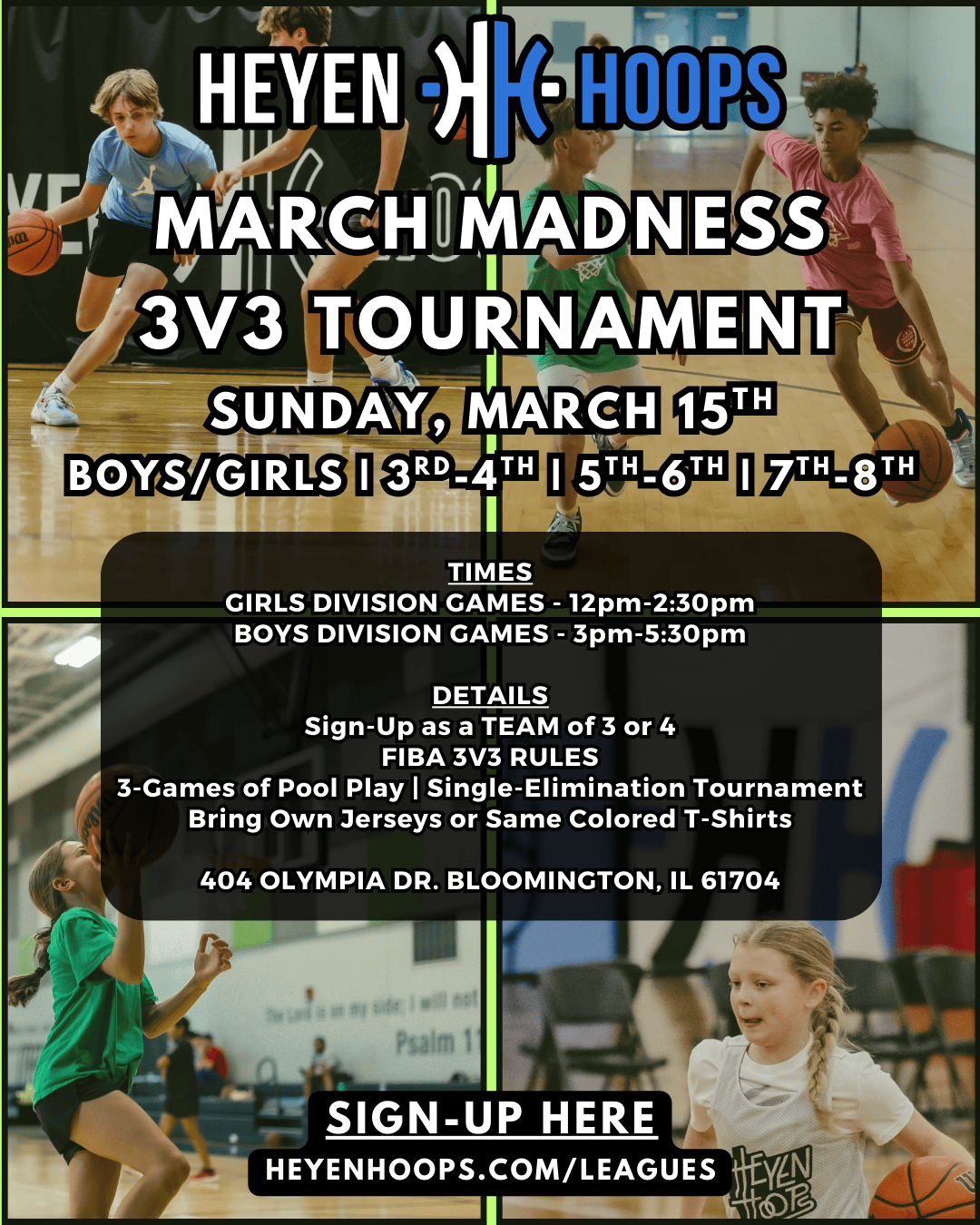 3rd/4th Boys and Girls - 9’2” Hoop, 28.5” Ball, Modified 3pt. Line, Must CLEAR behind H.S. 3pt. Line